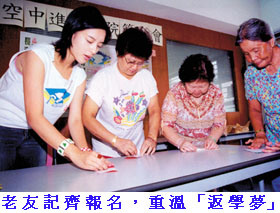 「 讀 書 、 上 堂 」 在 大 多 數 人 來 說 , 是 小 朋 友 、 年 青 人 的 專 利 , 對 於 上 了 年 紀 的 老 友 記 來 說 , 似 乎 已 沒 有 「 返 學 」 的 機 會 , 「 讀 書 」 已 是 陳 年 的 事 ! 而 且 又 要 舟 車 勞 頓 , 又 要 花 費 金 錢 , 真 的 不 是 每 個 老 友 記 也 花 得 來 的 事 情 ! 但 事 實 上 , 所 謂 「 活 到 老 學 到 老 」 , 要 做 一 個 現 代 耆 英 , 很 多 長 者 的 求 知 慾 比 年 青 人 還 強 , 時 刻 要 與 時 並 進 , 他 們 積 極 面 對 生 活 、 面 對 人 生 的 轉 變 需 要 , 不 斷 學 習 進 修 , 希 望 可 以 保 持 身 心 健 康 之 餘 , 更 能 發 揮 自 我 潛 能 , 發 揮 所 學 , 繼 續 成 為 社 會 上 有 用 的 一 份 子 ! 他 們 多 喜 報 讀 香 港 電 台 第 五 台 開 辦 的 「 長 者 空 中 進 修 學 院 」 ! 據 「 長 者 空 中 進 修 學 院 」 監 製 袁 翠 霞 說 : 『 我 們 學 院 的 好 處 是 不 用 老 友 記 們 舟 車 勞 頓 , 不 收 任 何 費 用 , 也 不 設 考 試 制 度 , 只 要 是 年 滿 五 十 歲 , 對 學 習 有 興 趣 , 便 歡 迎 成 為 我 們 的 學 員 ; 學 員 便 可 每 天 安 坐 家 中 , 收 聽 電 台 節 目 , 自 我 進 修 ! 』 ◆ 袁 學 夢