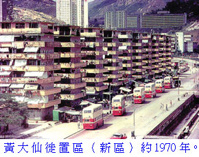 1953 年 12 月 25 日 聖 誕 夜 , 石 硤 尾 寮 屋 區 發 生 一 場 災 難 性 的 大 火 , 導 致 逾 五 萬 人 無 家 可 歸 , 災 民 就 在 附 近 一 帶 的 街 道 , 蓋 搭 簡 陋 的 棚 屋 以 作 棲 身 。 為 安 置 災 民 , 當 局 成 立 一 個 由 市 政 局 管 轄 的 「 徙 置 事 務 署 」 , 將 災 場 闢 作 「 石 硤 尾 徙 置 區 」 , 在 此 興 建 多 幢 七 層 高 的 徙 置 大 廈 , 居 住 單 位 主 要 分 有 86 、 120 及 240 英 尺 三 種 , 每 人 的 居 住 面 積 約 為 24 呎 , 只 有 公 用 廁 所 及 浴 室 , 對 於 流 離 失 所 的 災 民 來 說 , 不 啻 是 「 天 堂 」 了 。 石 硤 尾 徙 置 區 , 是 政 府 經 營 房 屋 之 始 。 但 說 到 公 共 房 屋 , 是 以 1948 年 成 立 之 「 香 港 房 屋 協 會 」 開 其 端 的 , 該 會 於 1952 年 , 建 成 了 位 於 北 角 名 為 「 模 範 村 」 的 首 批 廉 租 屋 。 此 後 , 政 府 陸 續 在 各 區 興 建 徙 置 屋 宇 , 包 括 黃 大 仙 、 老 虎 岩 ( 樂 富 ) 、 李 鄭 屋 、 大 坑 東 、 大 窩 口 等 地 。 時 至 今 日 , 不 少 這 些 徙 置 區 ( 後 來 改 名 為 「 新 區 」 ) 的 屋 宇 , 已 被 清 拆 重 建 , 現 在 , 又 輪 到 石 硤 尾 的 這 一 批 「 古 物 古 蹟 」 了 。